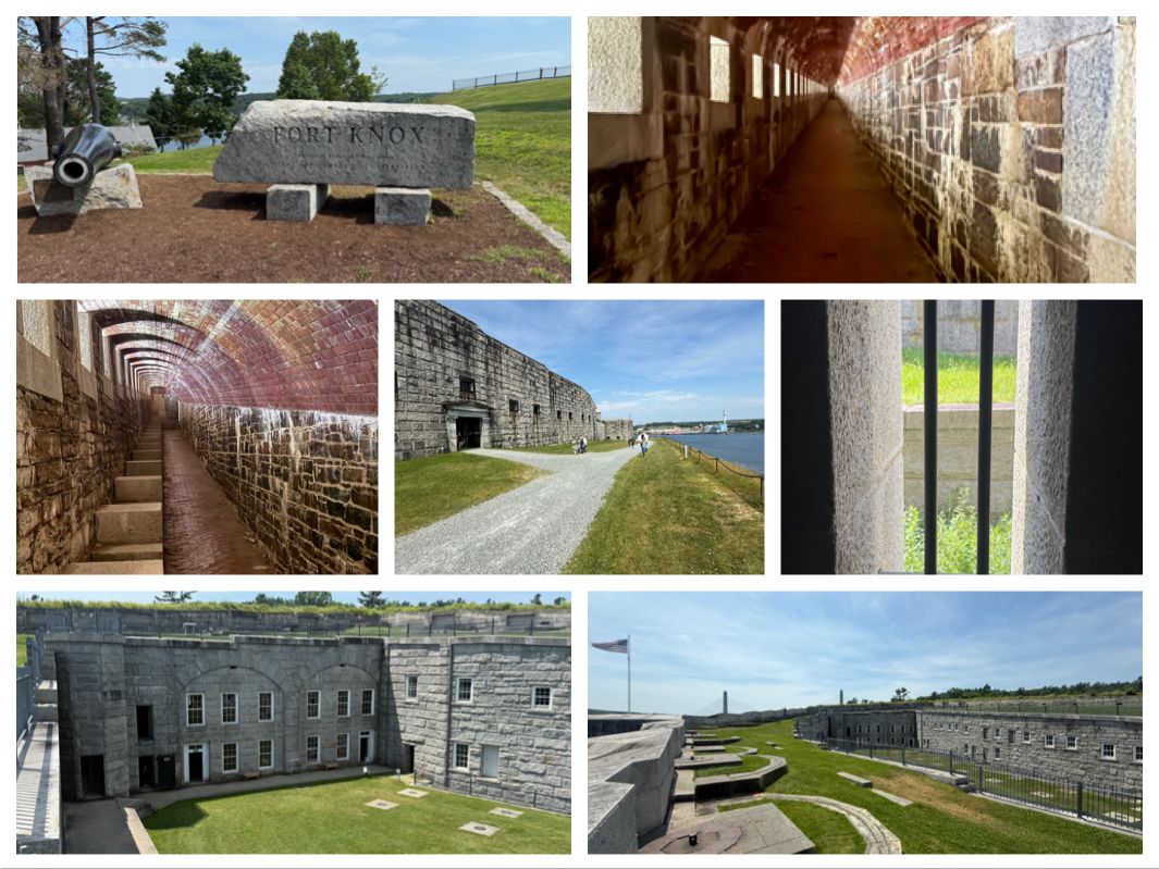 Vi havde egentlig kun regnet med en kort tur rundt på fortet, men så kom vi i snak med en dame, der var guide inde i fortet, og hun var meget informativ og ville gerne vise os rundt. Så afsted efter hende i de mørke gange fx 2 step alley, hvor der er to trin ned for hver 6. meter. Fortet hedder Fort Knox, men det er dog ikke det samme som det med guldet i Kentucky. Det her fort ligner faktisk ret meget Fort Jefferson, som vi så på Dry Tortugas i 2018 - dette fort er dog “gravet ned”, så hele “gården” ligger under niveau. Byggeriet af fortet begyndte i 1844, men det blev altid helt færdigt, og blev heller aldrig rigtigt brugt (ligesom Dry Tortougas). Det blev et lidt længere ophold end planlagt, men virkelig interessant og guiden var en rigtig god fortæller.