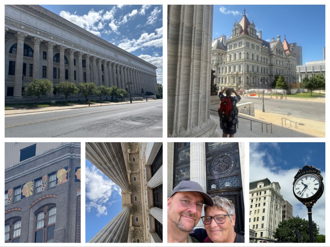 Gik ned mod havnen, og på vej passerede vi den ene store kæmpe bygning efter den anden bl.a. Alfred E. Smith State Office Building, der er statskontorbygning (som navnet også antyder), Chancellors Hall der bruges til offentlig arrangementer og New York State Capitol der er “regeringsbygningen”. Den er under ombygning (men kun på den ene side, skulle vi finde ud af senere på dagen).