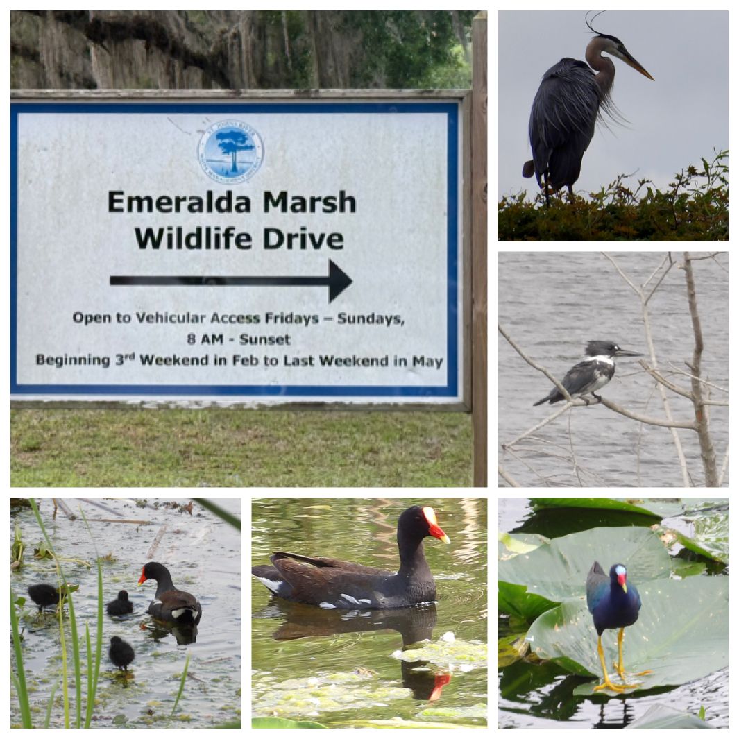 Kørte godt en time nordpå til Emeralda March, der er et stort naturområde i det centrale Florida. Det specielle her er, at det kun er fra 3. søndag i februar til slutningen af maj, at man kan køre på The Scenic Drive og kun fredag, lørdag og søndag. Og i dag er det søndag sidst i marts, så…