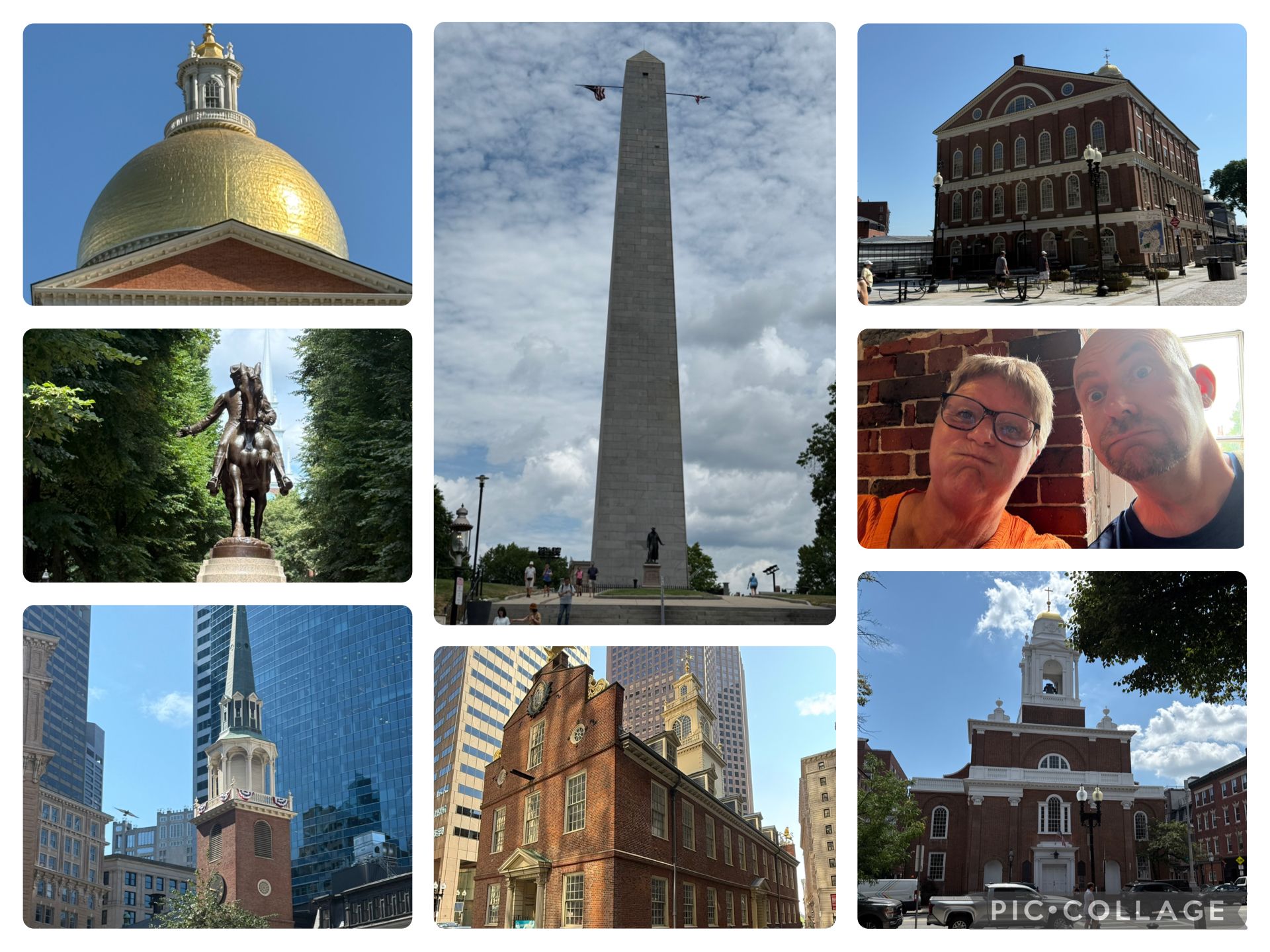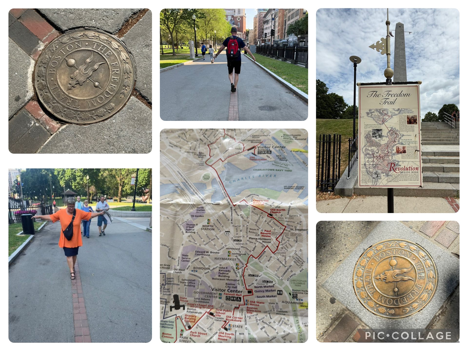 Vi fulgte Freedom Trail rundt fra start til slut. Det er en rute på ca 4 km med 16 historiske stop/steder fra den amerikanske revolution bl.a. Massachusetts State House, Old South Meeting House, Old State House, Faneuil Hall, Paul Revere House og Bunker Hill Monument (en kæmpe obelisk, desværre lukket om tirsdagen).