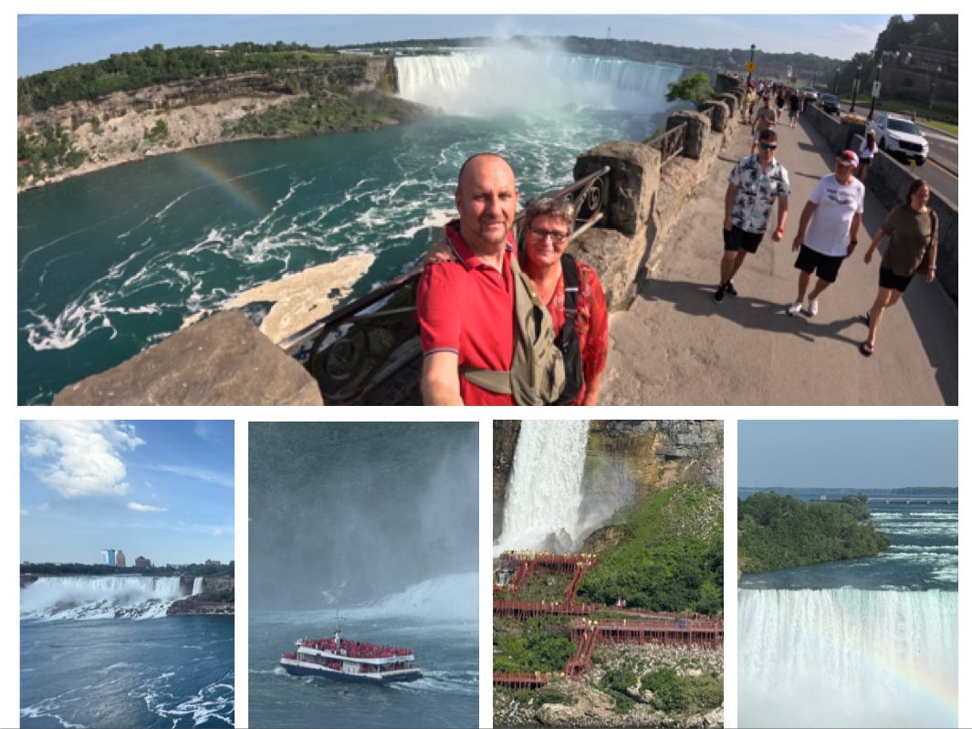 Klokken knap 15 kom vi til grænsen til Canada. Viste pas og talte lidt med en pasbetjent. Alt ok, så hen og betale vejskat (11,5 CAD), og så kørte vi de 22 km, der var ind til selve Niagara Falls.
