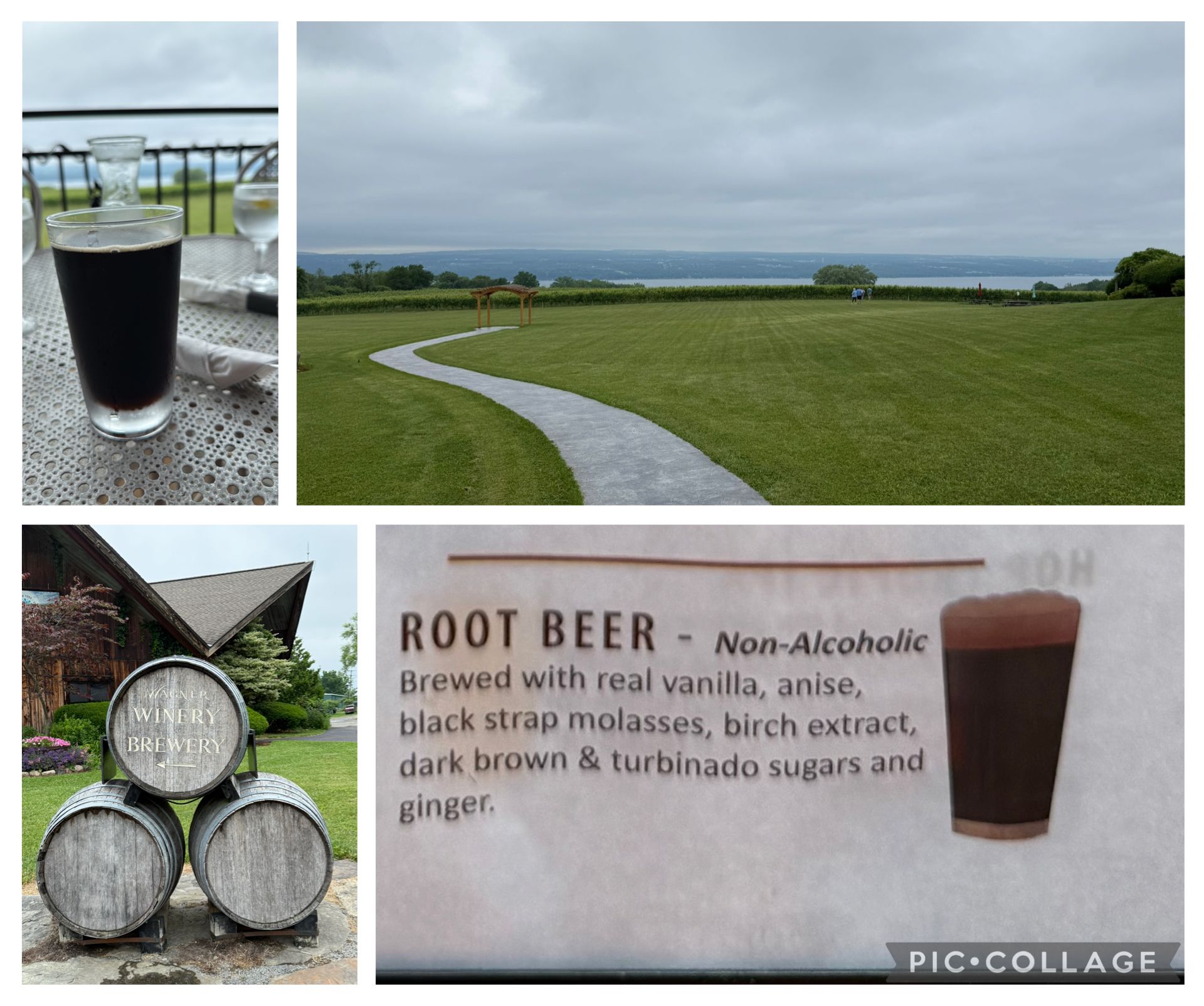 Denne rute er udover at være virkeligt smukt landskab også en såkaldt Scenic Wine Trail. Der ligger den ene vingård efter den anden. Det er særligt godt at dyrke vin i dette område, fordi de dybe lange søer virker som varmelagre, så om vinteren afgiver de varme og beskytter vinstokkene mod frost, og om sommeren køler de tilsvarende omgivelserne lidt ned. Stop på Wagner Brewery and Winery. Kiggede lidt rundt i produktionen, og fik af en lokal handlende anbefalet stedets Rootbeer. Så vi spiste frokost med udsigt over vinmarker og søen og smagte en virkelig god og iskold Rootbeer (non-alkoholic).